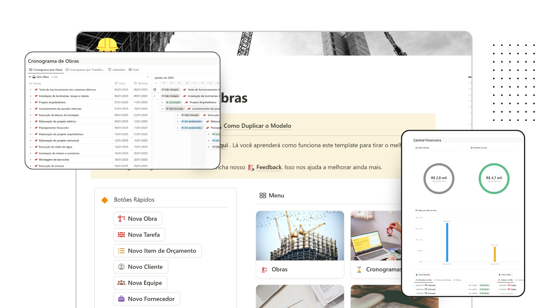 Nós adaptamos essa ferramenta à realidade da construção civil — criando modelos práticos e prontos para quem precisa organizar obras, orçamentos, cronogramas e muito mais.